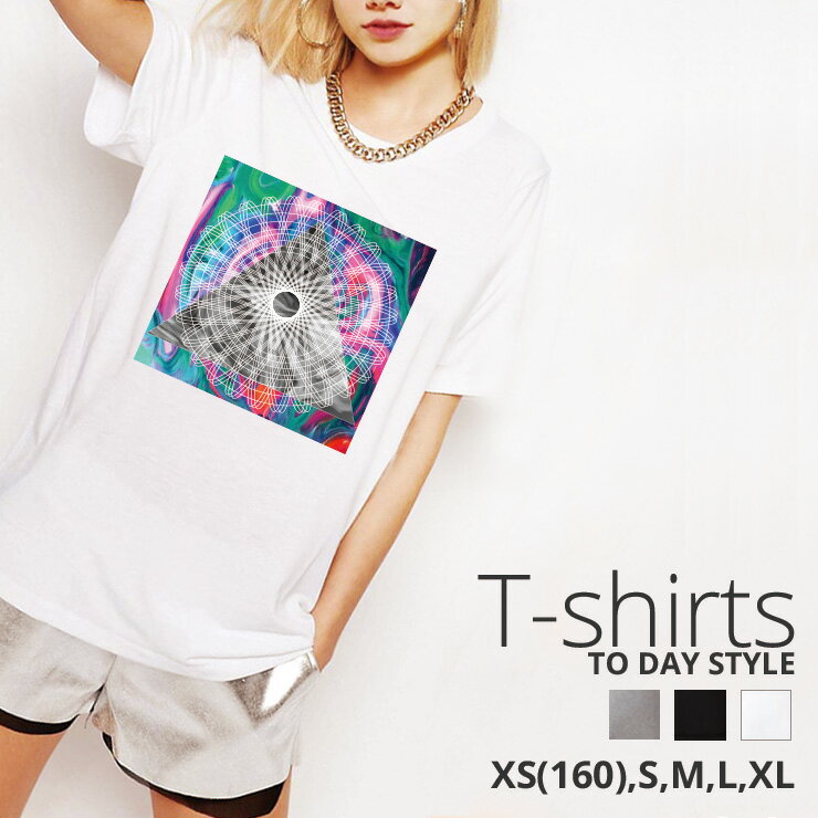 Tシャツ レディース メンズ クルーネック 丸首 綿 半袖 カットソー おしゃれ かっこいい 幾何学 マーブル 模様 三角形 グラフィック