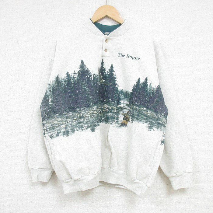 【中古】古着 長袖スウェット メンズ 00年代 00s 木 鳥 ヘンリーネック 薄グレー 霜降り Lサイズ 中古 スエット トレーナー トップス | 春夏 春物 春服 秋冬 秋物 秋服 ..