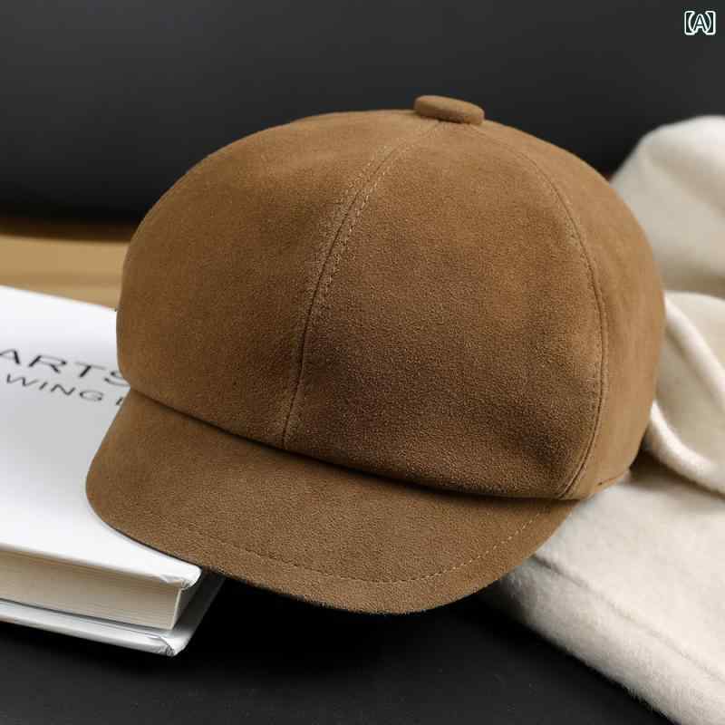 キャスケット ハンチング UV 紫外線 カット キャスケット ハンチング UV 紫外線 カット で エレガントな 革 六角形の 帽子 女性用 キャスケット 新聞 ファッション 秋冬 短い つば 付き レザーの ピーク ハット