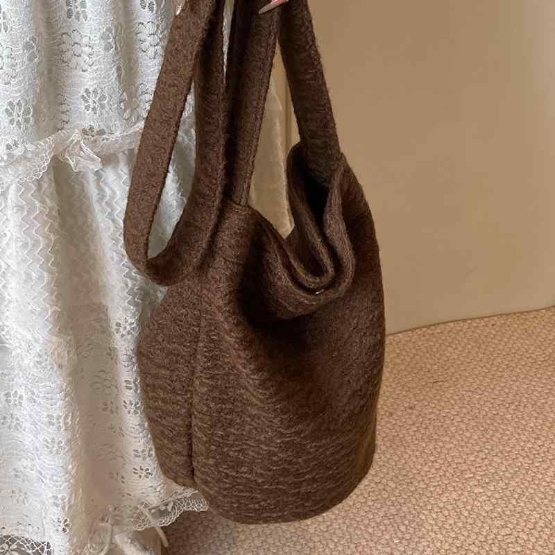 バッグ レディース 水桶バッグ 毛呢 秋冬 手提げ 肩掛け 鞄 大容量 通勤 普段使い イエロー系