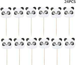 24個 パンダカップケーキトッパー カップケーキピック 食品フルーツピック 誕生日ケーキデコレーション用 KODORIA 24pcs Panda Cupcake Toppers Cupcake Picks Food Frui..