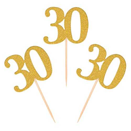 寄付者 50 個 30 番目のカップケーキトッパー ゴールドグリッター番号 30 ケーキピック 誕生日記念日パーティーデコレーション用 Donoter 50pcs 30th Cupcake Toppers Go..
