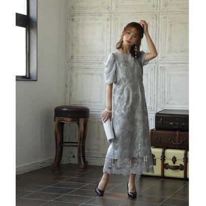 エピック デイ epic day ギャザースリーブレースロングドレス (スモークブルー)