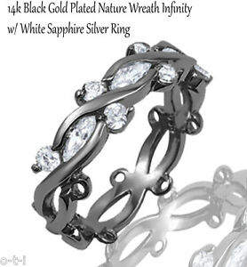 【送料無料】ジュエリー・アクセサリー ブラックブリリアントゴールドマーキーズケルトクロスオーバーエタニティシルバーリング14k nero oro brillante marquise infinit..