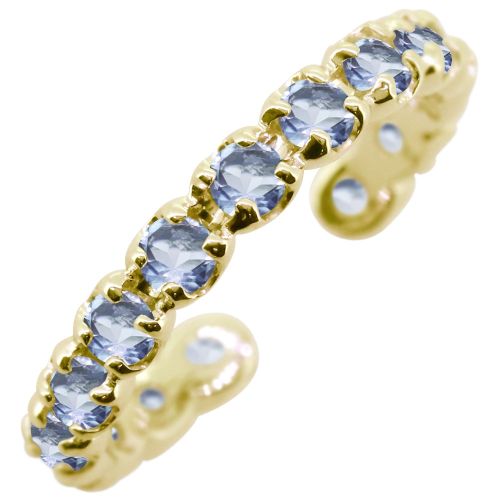 イヤーカフ エタニティ 18k 18金 誕生石 3月 アクアマリンサンタマリア イヤリング イヤカフ 片耳用
