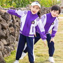 ジャージ 小学生 園児 男女兼用 三点セット 綿100% ジップアップ 上下セット 長袖 長ズボン パープル 紫 運動会 体育祭 通学 春秋 スクールウェア スポーツウェア