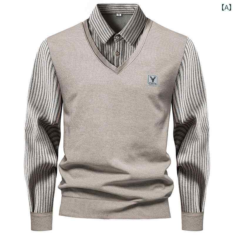 セーター メンズ 秋冬 フェイクレイヤード シャツ襟 プルオーバー 重ね着風 裏起毛 長袖 ウォッシャブル シワになりにくい カジュアル おしゃれ 都会的 ストレートシルエ..