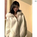 パーカー フード付き ニット 女性用 ホワイト カーディガン セーター 春秋 スタイル ファーカラー フード付き ゆったり ジッパー ニット ジャケット