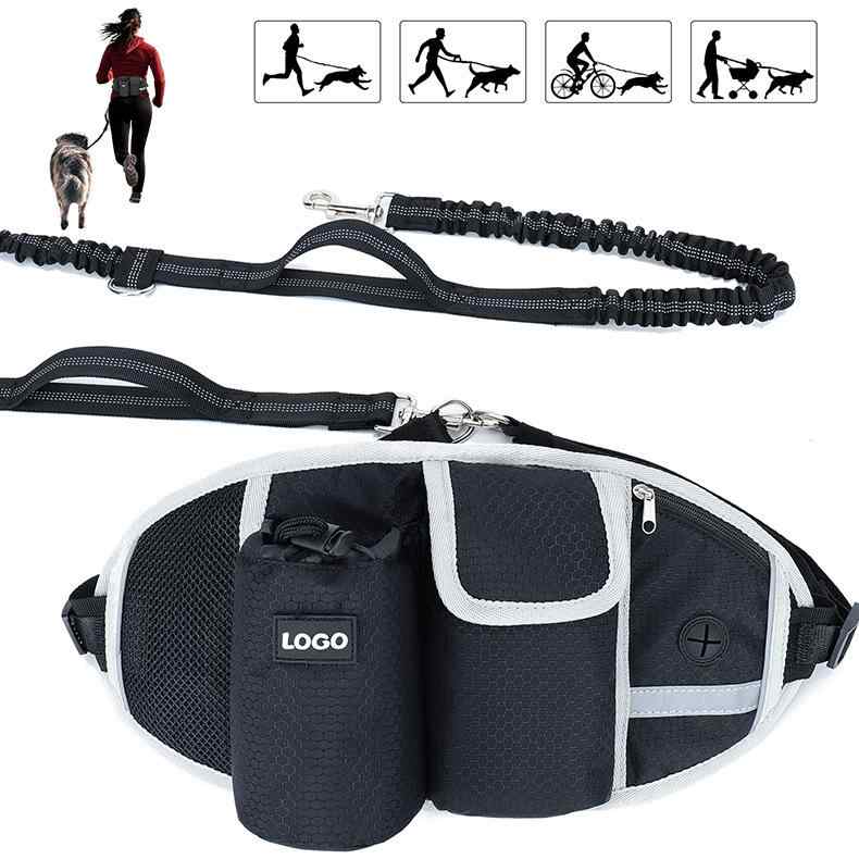 スポーツ腰バッグ ペット用 リード付き 多機能 アウトドア ランニング トレーニング 犬 散歩 男女兼用 オックスフォード布 黒 青 グレー メタル標識 アップグレード版 深..
