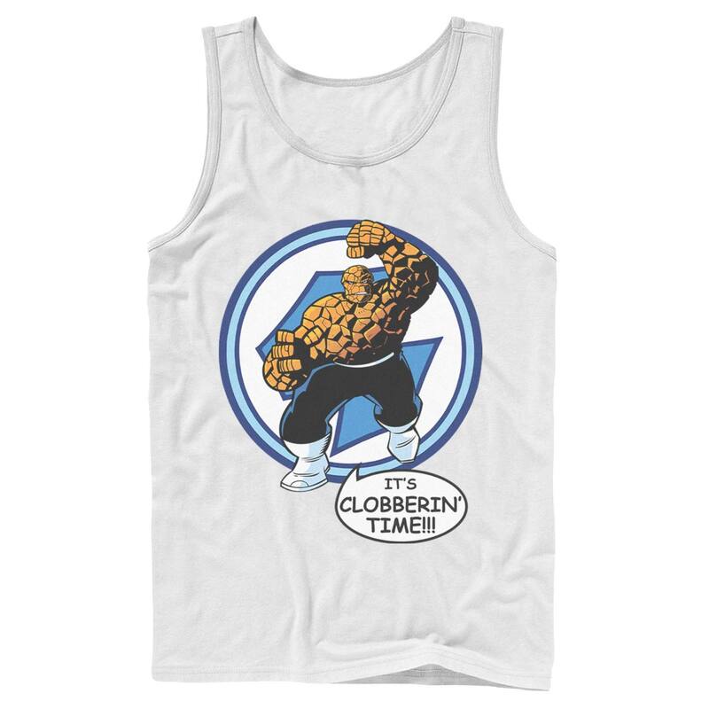 【送料無料】 マーベル メンズ Tシャツ トップス Men's Marvel Fantastic Four The Thing Clobberin' Time Circle Tank Top White