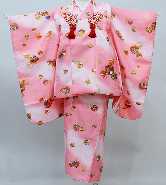 七五三 三歳 女児 被布着物セット ピンク 鈴 3歳 3才 三才 女の子 祝着 お仕立て無料 新品(株)安田屋 NO39419