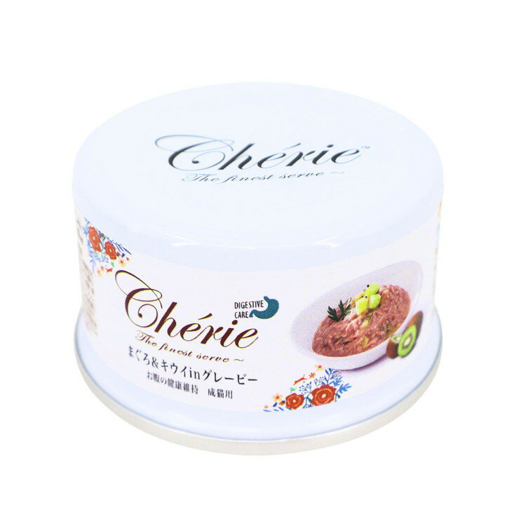 【商品説明】<Cherie=シェリー フランス語で「愛しい人、愛する人」>厳選した原材料とこだわりの製法で高い嗜好性を持つ成猫用総合栄養食。フラクトオリゴ糖配合でお腹の健康維持をサポート。動物性たんぱく質は天然まぐろのみを使用、グルテンフリーでグルテン等にアレルギーのある子に配慮しています。自然の栄養価を保つためスチーム製法を採用。食品の鮮度を維持するために、全ての原材料は調理開始から2時間以内に製品化されます。着色料、保存料不使用。〇原材料(成分)水、まぐろ、増粘安定剤(タピオカ澱粉、グァーガム)、キウイ、大豆油、香料、ミネラル類(Ca、P、K、クロライド、Fe、Zn、Mn、Cu、Se、I)、フラクトオリゴ糖、タウリン、ビタミン類(コリン、E、B1、A、ナイアシン、パントテン酸Ca、D3、B2、B6、ビオチン、B12、葉酸、K3)〇給与方法【1日あたりの給与量目安】1〜3kg:1.75〜3.5缶3〜5kg:3.5〜5缶5〜8kg:5〜7缶上記を参考に、一日数..
