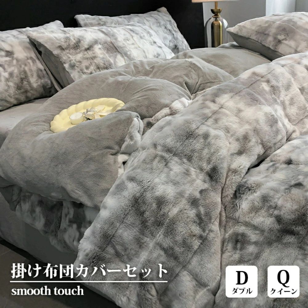 セット内容1.枕カバーダブル/クイーンx22.シーツx1(マットレス・敷布団兼用)3.掛け布団力バーx1サイズフラットシーツタイプ【Dダブル(4点セット)】1点布団カバー:200*230cm1点フラットシーツ:230*245cm2点枕カバー:48*74cm【Qクイーン(4点セット)】1点布団カバー:220*240cm1点フラットシーツ:230*265cm2点枕カバー:48*74cmボックスシーツタイプ【1.5mサイズ用(ダブル4点セット)】1点布団カバー:200*230cm1点ボックスシーツ:150*200cm*マチ約20cm2点枕カバー:48*74cm【1.8mサイズ用(クイーン4点セット)】1点布団カバー:200*230cm1点ボックスシーツ:180*200cm*マチ約20cm2点枕カバー:48*74cmポイント・【あたたかく包み込む寝心地】ふんわりやわらかなフェイクラビットファーと、なめらかなマイクロファイバー加工フランネルを使用。贅沢な毛布のような温かさで、冷え込む冬も快適に眠れます。・【超密度フランネルの優しい肌触り】高密..