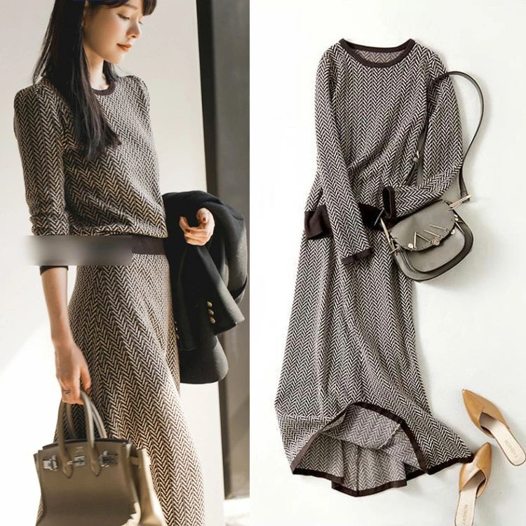 卒業式 入学式 通勤 上品 着痩せ オシャレワンピース セットアップ タイトスカート ニットトップス 長袖 秋冬 40代 レディース