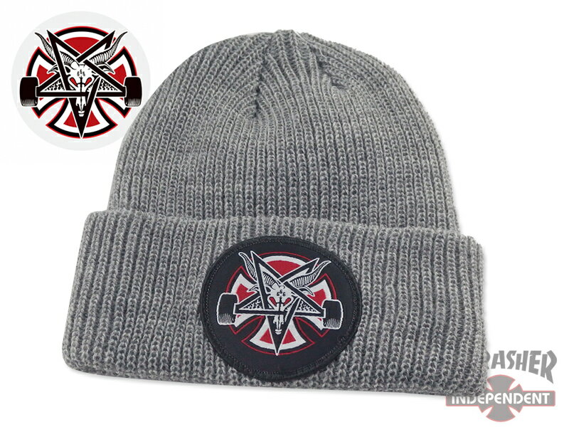 ☆INDEPENDENT×THRASHER【インディペンデント×スラッシャー】PENTAGRAM CROSS LONG SHOREMAN BEANIE HEATHER GREY ニットキャップ ヘザーグレー 17323 [SKATE SK8 スケボー]