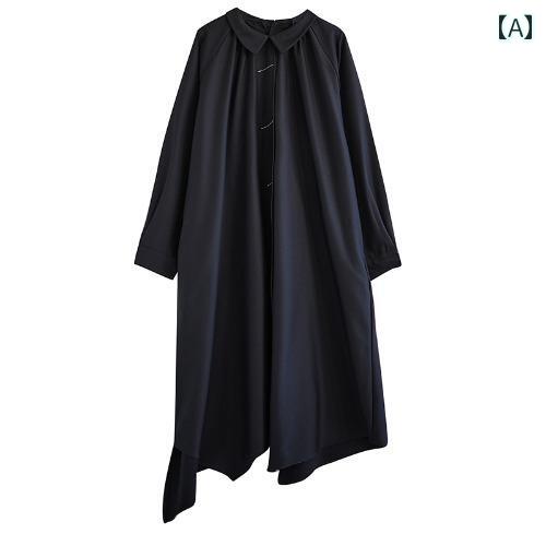 春 韓国 大きめサイズ バックボタン ドレス ダーク ブラック トップステッチ コントラスト イレギュラー ヘム ロング スカート レディース