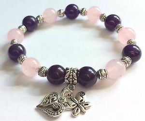 【送料無料】ブレスレット アクセサリ— アメジストハートチャームブレスレットストレスローズgemstone rose quartz amethyst heart charm bracelet insomnia stress mi..