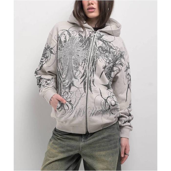 ブランド名Insomnia Visuals性別Women's(レディース)商品名Eclipse Rhinestone Light Grey Zip Hoodieカラー・Grey