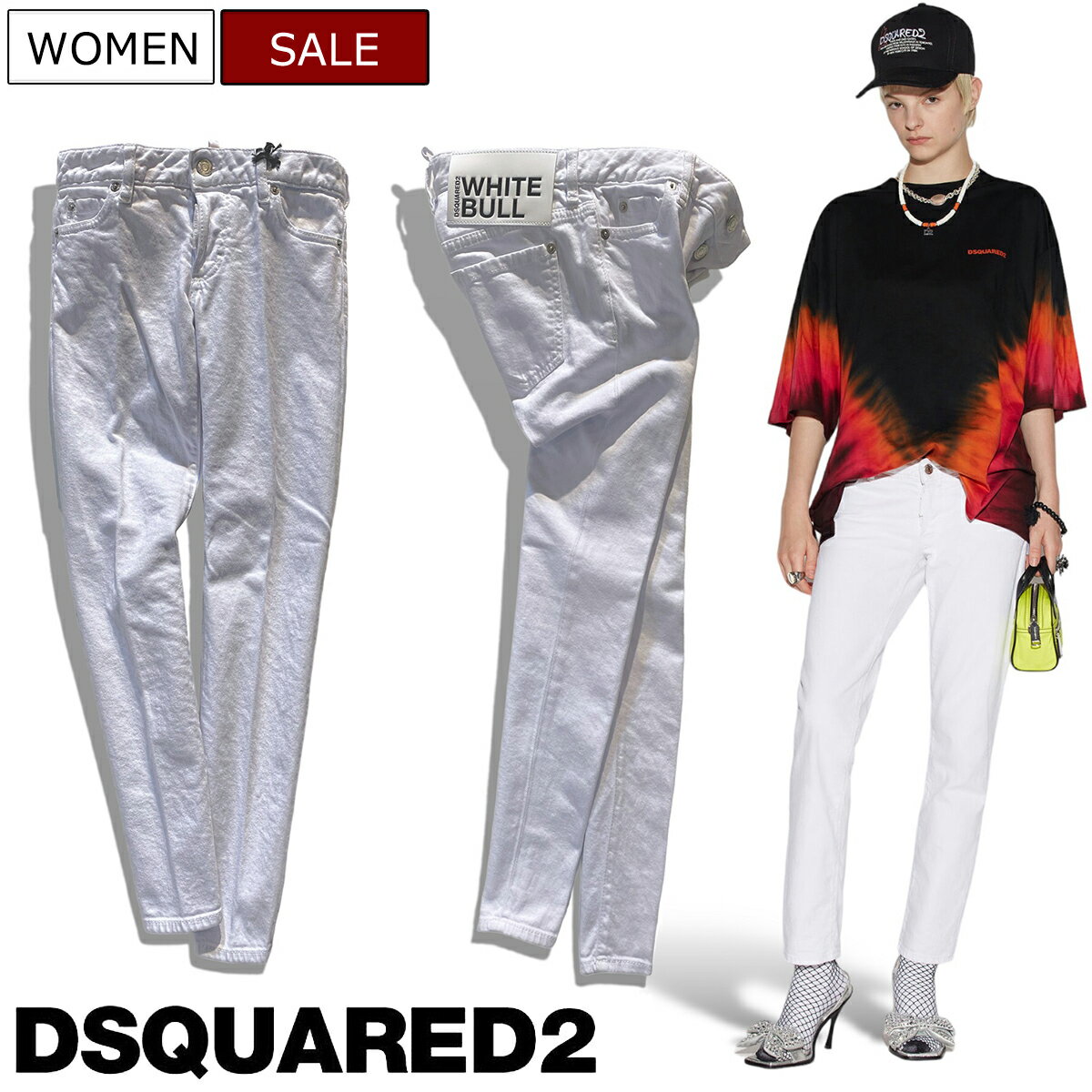 【定価74,800円(税込)】DSQUARED2 ディースクエアード 上品な色香漂わせるオールホワイト!柔らかく穿きやすい ストレッチ ホワイトデニムパンツ ジーンズ WHITE BULL 《..