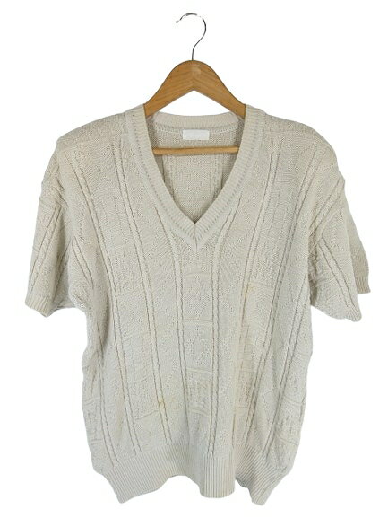 【中古】ラストシーン LAST SCENE ニット 半袖 Vネック コットン ショルダー パッド 総柄 ホワイト系 QQQ レディース 【ベクトル 古着】 250713