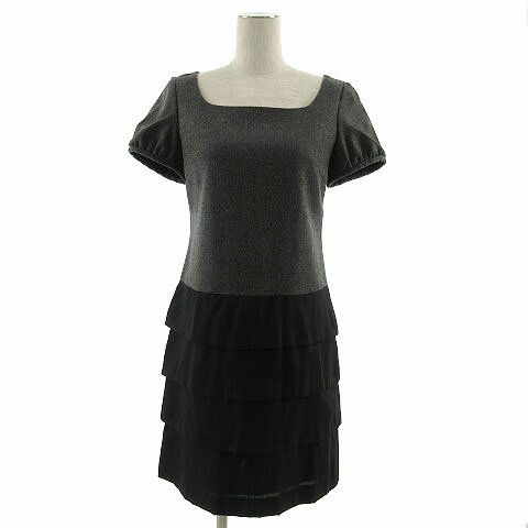【中古】プレミアム バイ ラストシーン Premium by LAST SCENE ワンピース 半袖 ミディ丈 切替 ドッキング ティアード カシミヤ混 日本製 グレー ブラック 黒 1 レディー..