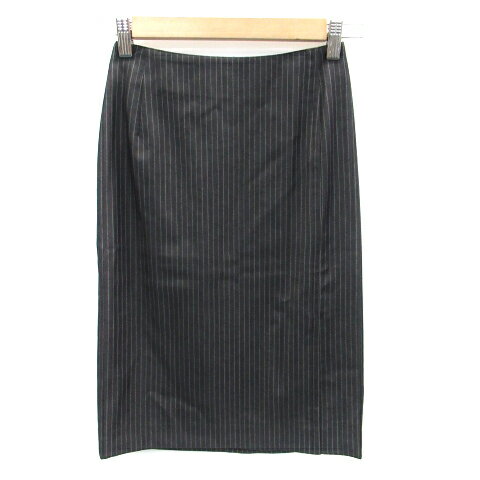 【中古】ラストシーン LAST SCENE タイトスカート ミモレ丈 ストライプ柄 ウール M 黒 ブラック /SM28 レディース 【ベクトル 古着】 230517