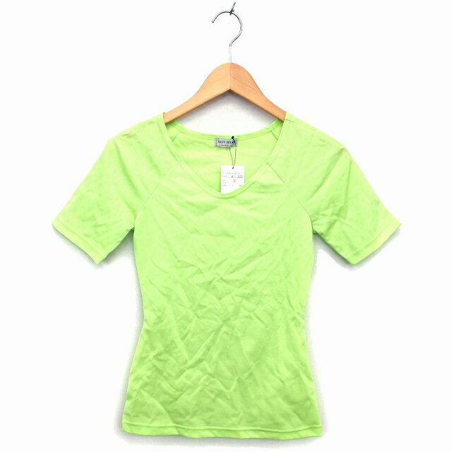 【中古】未使用品 ラストシーン LAST SCENE タグ付き カットソー Tシャツ Vネック ラグランスリーブ 無地 半袖 M イエローグリーン /NT19 レディース 【ベクトル 古着】 ..