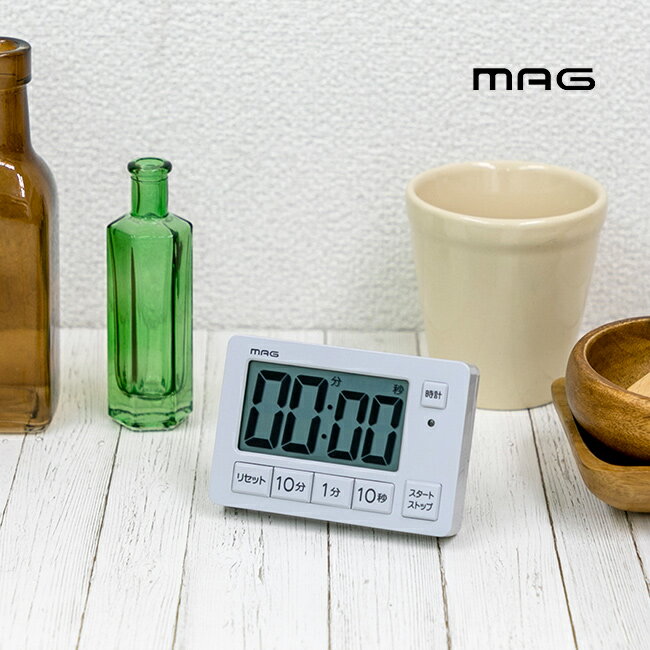 MAG マグ 音量切替消音機能付タイマー ヒカルン TM-608の解説 料理を作るときやテスト勉強・受験対策などにお使い頂ける小さめのタイマー。 大・小・消音(ライト点滅)の3種類に音量切替ができ、タイマーを使用しないときは時刻表示に切り替えることもできます。 スタンド・マグネット・ストラップホール付きなので、机に置いたり冷蔵庫などに張り付けたりして使うことも◎ 平置きでも操作しやすいボタン設計も特徴です。 MAG マグ 音量切替消音機能付タイマー ヒカルン TM-608の詳細 商品名: MAG マグ 音量切替消音機能付タイマー ヒカルン TM-608 説明: 音が鳴らない タイマー 学習 勉強 塾 音が出ない デジタルタイマー ライト 点灯 お知らせ 子供 宿題 テスト勉強 受験 子ども 学生 こども 用途・場所: 室内 屋内 自宅 家 家庭 塾 学校 小学校 中学校 高校 専門学校 福祉施設 養護施設 介護施設 幼稚園 保育園 託児所 キッチン 台所 ダイニング 子供部..