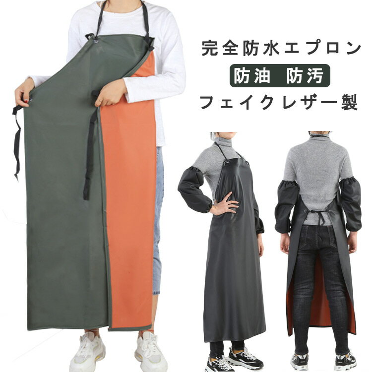 防水エプロン フェイクレザー 完全防水エプロン 防油 防汚 作業エプロン 前掛け ワークエプロン 業務用エプロン 男性 女性 男女兼用 水仕事 料理 飲食店 食品加工 精肉 ..