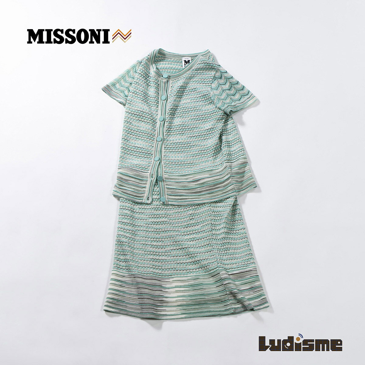 【中古】ミッソーニ M MISSONI マルチパターン ニットセットアップ 半袖 イタリア製 レディースファッション レディーストップス ドレス カジュアルセットアップ サマー..