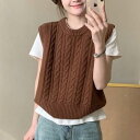 ニットベスト レディース ラウンドネック ノースリーブ レイヤード風 トップス ゆったり ケーブル編み ミルキーホワイト 卵色 グレー ブラック コーヒー 珈琲色 スカイブ..