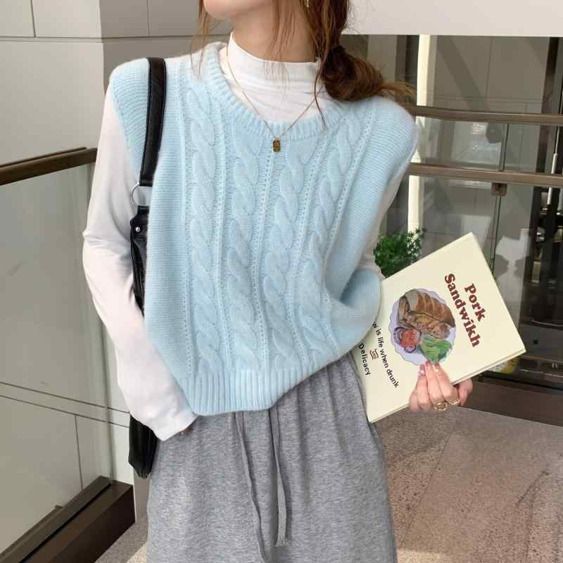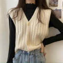 ニットベスト レディース レトロ 春物 プルオーバー ケーブル編み ゆったり ミルキーホワイト グレー ブラック パープル キャメル レイヤードスタイル