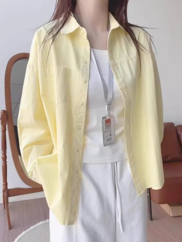 新作 ドーパミンカラー ミルキーイエロー 純綿 コットン100% レディース 女性用 夏 夏物 重ね着 レイヤード ゆったり ルーズシルエット シャツ ブラウス アウター 羽織り..