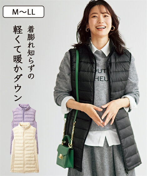 ベスト すっきり軽量 チュニック 丈 ダウン 収納 ポーチ 付 秋 重ね着 レイヤード スモーキーパープル/ブラック/ミルキーベージュ | M/L/LL | ニッセン nissen