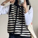 ニット レディース 秋冬 ストライプ ベスト パーカー フード付き アクリル ポリエステル レイヤード ノースリーブ ゆったり かわいい カジュアル ミルキーホワイト ブラ..