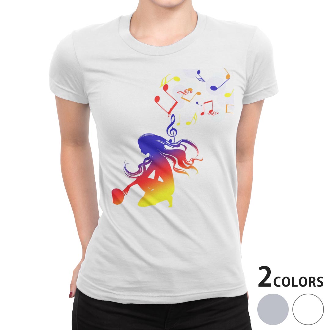 tシャツ レディース 半袖 白地 デザイン M L 白 ホワイト グレー Tシャツ ティーシャツ T shirt 004574 ラグジュアリー クール 音楽 イラスト カラフル
