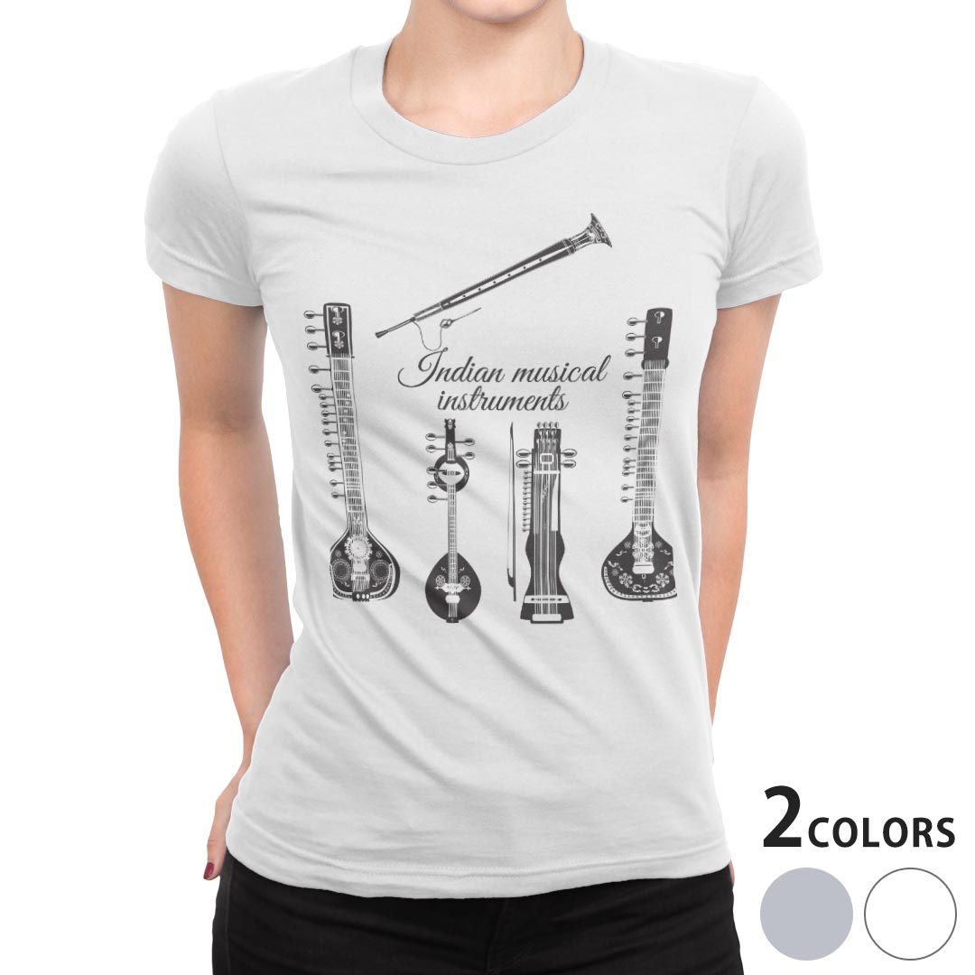 tシャツ レディース 半袖 白地 デザイン M L 白 ホワイト グレー Tシャツ ティーシャツ T shirt 014211 音楽 楽器 ミュージック