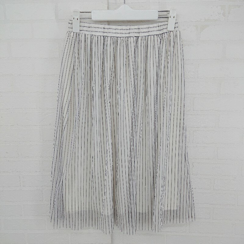 ◇ earth music&ecology チュール ストライプ 膝下丈 フレア スカート サイズF オフホワイト レディース E 【中古】