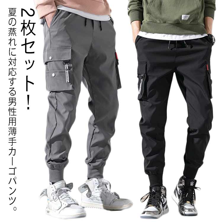 カーゴパンツ メンズ 夏 薄手 カーゴ パンツ 2枚セット ロングパンツ 6ポケット 薄手 快適 通気 ジョガーパンツ イージーパンツ カジュアルパンツ スリム 作業着 美脚 ウ..