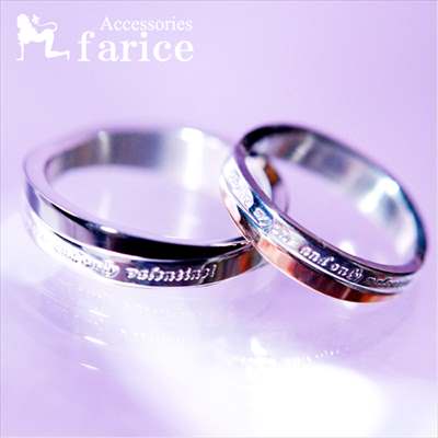 ウェイブライン ペアカラーデザイン 【You`re my only valentine/あなたは私の唯一人の恋人です】 メッセージ彫り ステンレス ペアリング【ブラックorピンクゴールド】