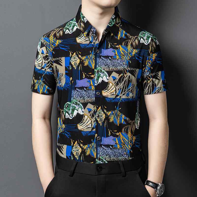 シャツ メンズ 半袖 夏 カジュアル 涼しい プリント 紳士服 父親