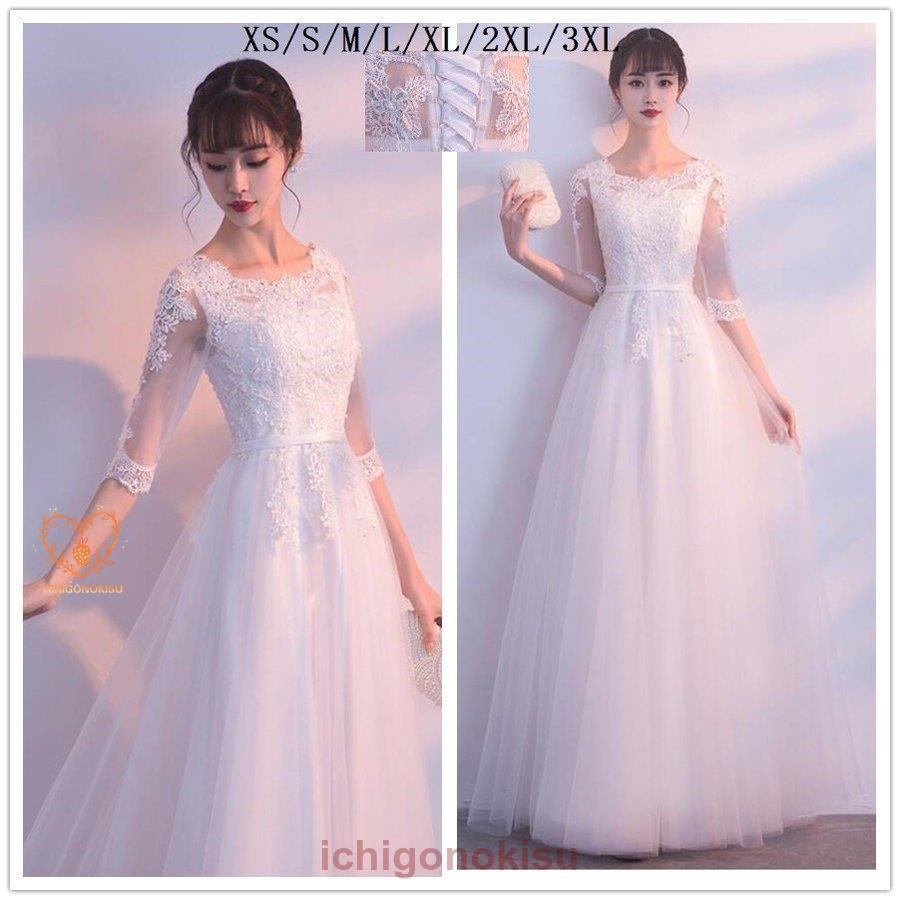 ウエディングドレス ロングドレス 袖あり 総レース ナイトドレス パーディードレス 30代40代 ステージ衣装 オペラ声楽 成人式 花嫁 忘年会 結婚式 ピアノ