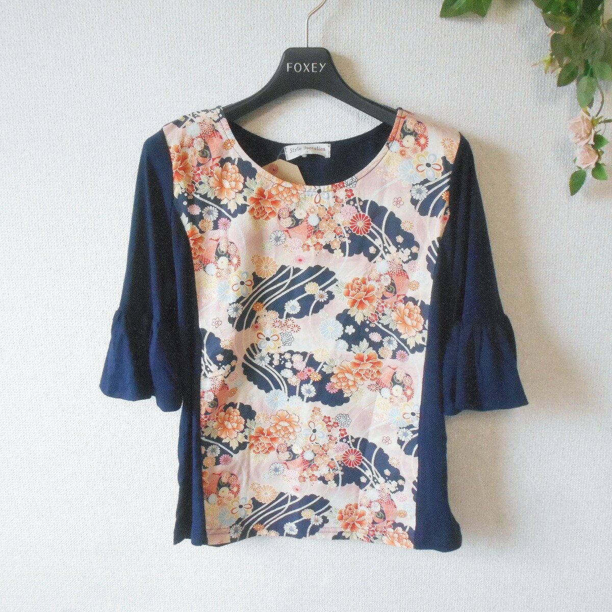 【中古】新品 タグ付き スタイルオペレーション style operation カットソー 5分袖 Tシャツ 和柄 レディース M 未使用 日本製