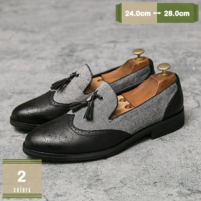 777円OFFクーポン ローファー メンズ 小さいサイズ ビジネスシューズ ウィングチップ バイカラー スリッポン 大きいサイズ タッセル付き 革靴 スーツ 結婚式 オペラシュ..