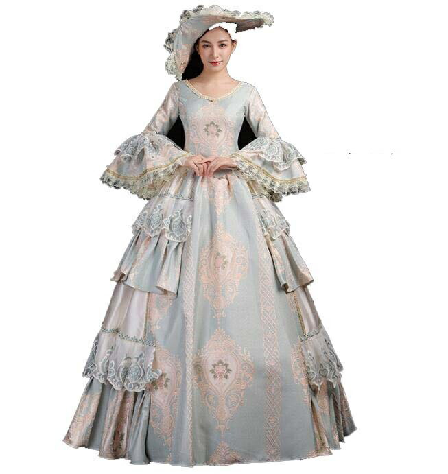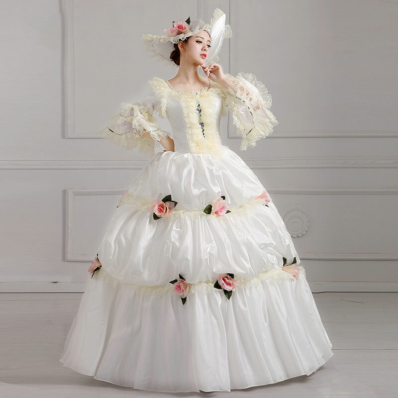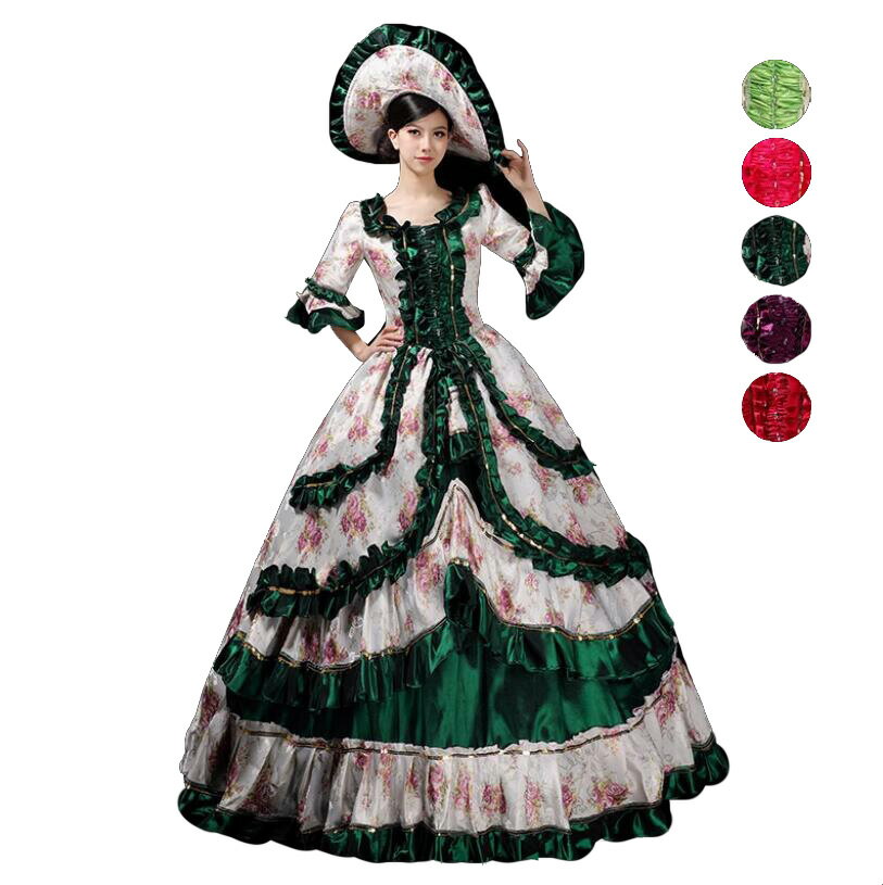 送料無料 ロングドレス 中世ヨーロッパ風 演奏会用ドレス プリンセスドレス 帽子付き 花柄 ステージ衣装 中世貴族風お姫様ドレス 洋風ドレス コスチューム 現代演劇服装 ..