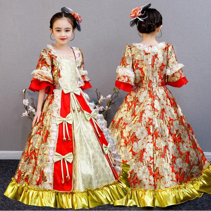 女の子 キッズドレス 子供服 演奏会 プリンセスライン 学園祭 パーティードレス ヨーロッパ風 中世貴族風 貴族ドレス 華やか お姫様 宮廷 ロングドレス 舞踏会 ステージ..