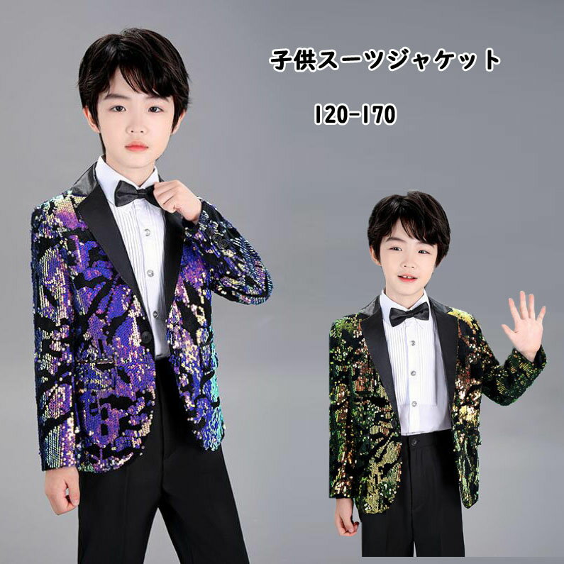 キッズスーツジャケット 子供演出服 ハロウイン スパンコール付き 子供演出服 ステージ衣装 ダンス衣装 舞台衣装 男の子 スーツ 男児 子供服 ピアノ 発表会 卒業式 演出..