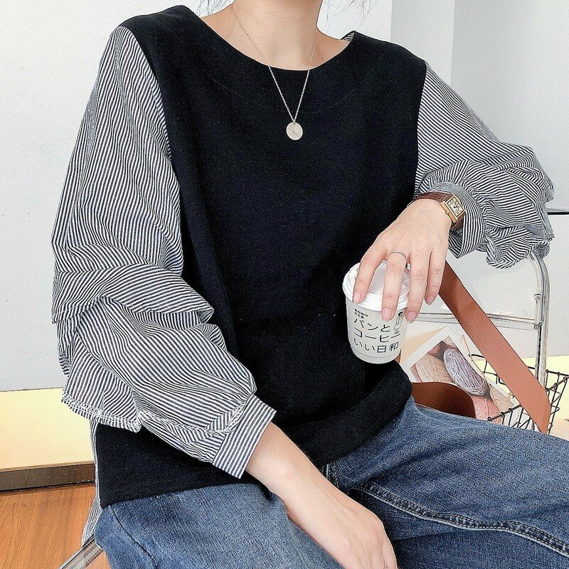 新作 2color シャツ レディース ドッキング ブラウス 長袖 チュニック トップス 春 秋 アウター 花柄 大きサイズ 体型カバー 可愛い シンプル エレガント 春夏秋 韓国風 ..