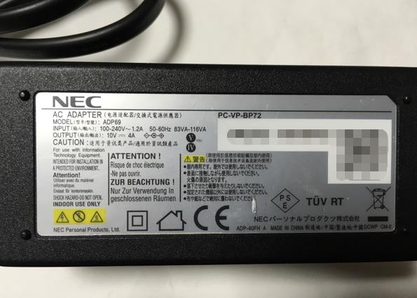 中古品 NEC 純正ACアダプター ADP69 10V 4A PC-VP-BP54 ADP86 PC-VP-BP47 PC-VP-BP66 PC-VP-BP51 OP-520-76412 ADP83 10V 5.5A対応