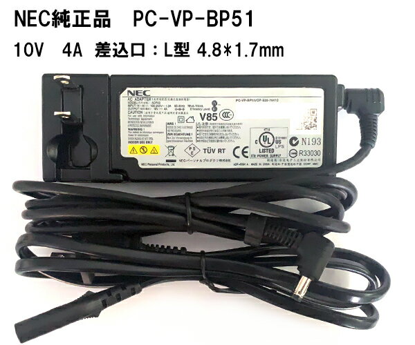 ■製品仕様: ■メーカー:NEC ■ACアダプター型番:PC-VP-BP51 ■出力:10V 4A ■入力:100V-240V 50-60Hz ■コネクタ形状:L字型 外径4.8mm 内径1.7mm ■電源ケーブル付属 ■対応純正型番: PC-VP-BP51 PC-VP-BP54 PC-VP-BP47 PC-VP-BP66 ■注意事項 : ■画像はイメージです。 ■中古品のため、 本体に使用傷があります。 ■駆動時間および充電時間は、使用環境により異なります。 ■注文の前に必ず型番、電圧、電流、コネクターサイズ等を確認上、ご注文してください。 ■メーカーの製品更新により、生産ロットが、標識若干違う場合があります。 ■【品質保証】商品品質を保証しておりますので、ご安心に購入してください。 製品に不具合が生じた場合は、トップページの【問い合わせ】をクリックして弊社宛まで直接にお問い合わせ下さい。 お客様からのお問い合わせ内容に応じて商品交換・返品可能です。▼11月限定_当選確率2分の1(要エントリー)